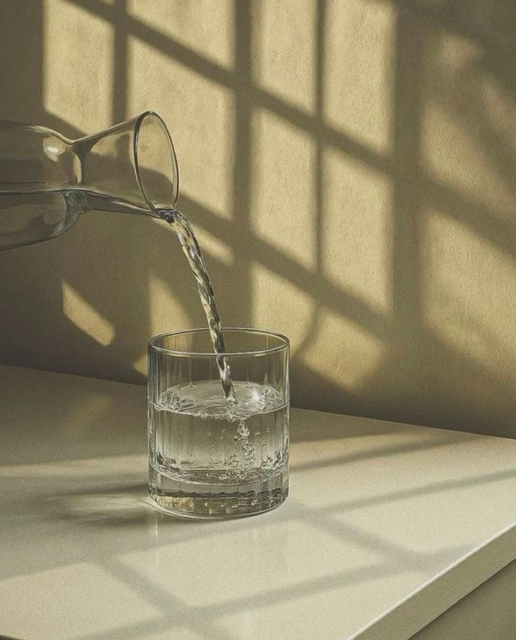 Beba a água e coma o alimento com calma, em paz. Fique em silêncio contemplativo. Ao terminar, agradeça.